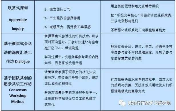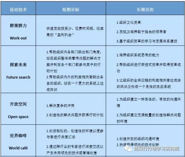 (1) 自我指导。 (2) 希望平等地与老师讨论。 (3) 成人希望教育不再是你教我学,而是你帮我学。 (4) 成人积累了大量的经验,这些经验是成人学习的丰富资源,成人倍加珍惜。 (5) 成人的学习意愿与他社会职责的发展任务密切联系。 (6) 成人学习是以问题为中心,而不是以教材为中心。 综上所述,觉知行的观点认为,唯有通过组织学习的方式,并以企业实际工作问题为核心议题,在“干中学,学中干”的行动学习过程中,才能真正解决组织学习问题,才能将组织行为转变需要学习者新的行为固化下来,也只有如此,领导者才能形成组织管理能力,变命令控制管理为承诺授权式管理,最终实现促进组织绩效提升。 三、促动技术是领导力发展的关键技术 1、参与度决定认可度 群体动力学的主要代表人物库尔特.勒温先生有个著名的“参与改变理论”。 通过团体和群体来改变个体的行为,效果远比直接去改变一个个具体的个体更好。 2、管理方法套路化 管理套路口诀化 套路就是标准的流程与技术工具的结合:组织领导力管理落地必须要有促动技术贯穿于其中。 具体的到行动学习的促动技术而言,目前总计大约有六十多种方法和工具,但其中常用的大概有九种我们就把它称之为“独孤九剑”,你要是把这常用九种方法都掌握了在组织中推进领导力的行动学习的项目就问题不大了。 行动学习“独孤九剑” 第一剑: 第二剑: 第三剑: 第四剑: 第五剑: 第六剑: 第七剑: 第八剑: 第九剑: 这些被世界500强企业积极实践的行动学习(Action Learning)方法,有效的解决了领导力管理中员工态度“从要我学到我要学”、“从要我做到我要做”的问题。 在充分考虑国内企业中管理人员及员工的特点,运用以上九种组织促动法,专门设计与研发了行动学习工作坊,旨在帮助中国企业有效实践世界500强企业的优秀领导力促动学习技术,在面对21世纪善变、无常、复杂、模糊的商业环境之下,能把握时代脉搏,在新的全球化商业浪潮中,通过快人一步的领导力的学习法赢得先机。 领导力行动学习工作坊的特点与作用? 促动技术是领导力行动学习得以成功的前提,促动(Facilitate)字面上的意义是“让事情变得容易”。 |
