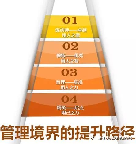 二、领导力如何转型提升? 耶鲁校长曾经在毕业典礼上说道,领导力就是鼓励他人,达成团队(组织)目标的能力。 1、领导力5项能力 a.持续成长的学习能力; 提升自我、应变创新的能力,想要减少压力就得自我提升能力,既要加强学习并要讲究学习速度。 四层境界的提升路径: 【精英----管理----教练-----促动师】 【起点----基准----优秀-----卓越】 b.多谋善断的决断力: (1) 用他人的能力解决自己问题; (2) 用简单的方法解决复杂问题; (3) 用未来的视角解决现实问题; 决策考虑要素: c.整合资源的组织力; 人尽其才的完美组织: (1) 合适优于完美; (2) 团队优于人才; (3) 多角优于独角; d.带队育人的教导力; 育人七步骤: (1) 选择: (2) 预热: (3) 传授: (4) 模拟: (5) 校正: (6) 习惯: (7) 突破: e.凝聚人心的感召力; 怎样把普通员工培养成业务主管? (1) 给资源(支持); (2) 给能力(沟通、带队); (3) 给规范(绩效考核); (4) 给奖励; 在我们总结了领导力的5个关键能力后,是否意味着我们都掌握领导力的要领和方法,可以导入到组织和企业中去具体实施呢? 2、领导力落地之殇